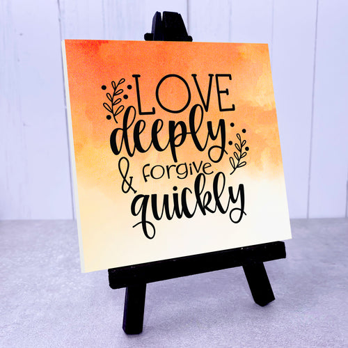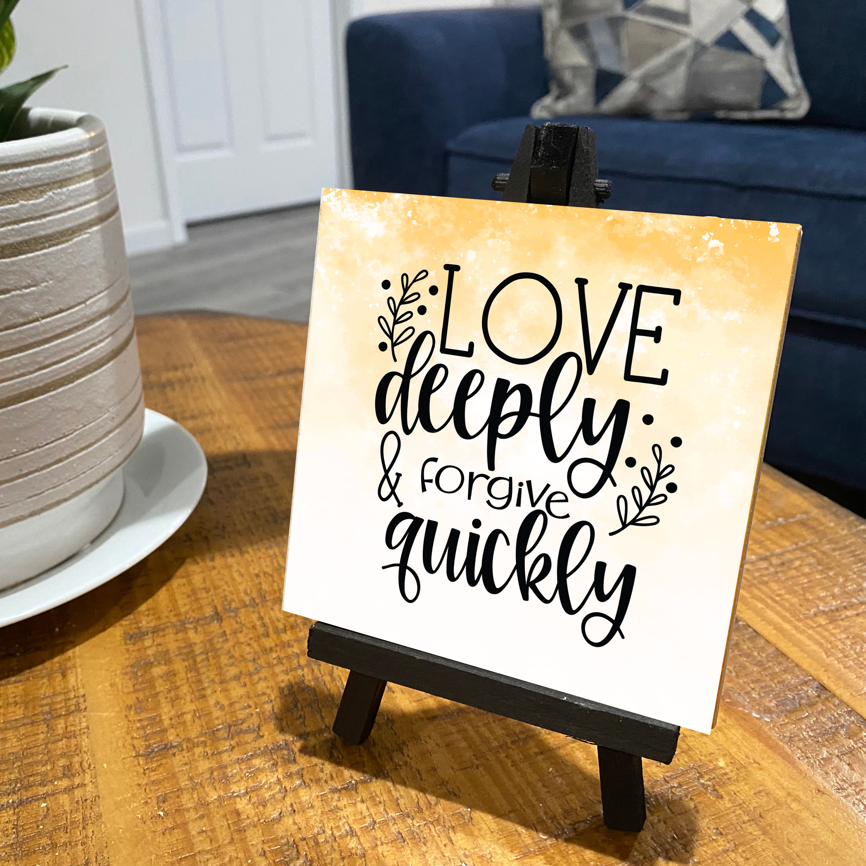 This tile measuring 4.25" x 4.25" comes with an easel and features a powerful message from the Bible in 2 Corinthians 5:17. The verse, "Love deeply and forgive quickly," serves as a beautiful reminder to show love and kindness towards others, making it a perfect addition to your home decor.